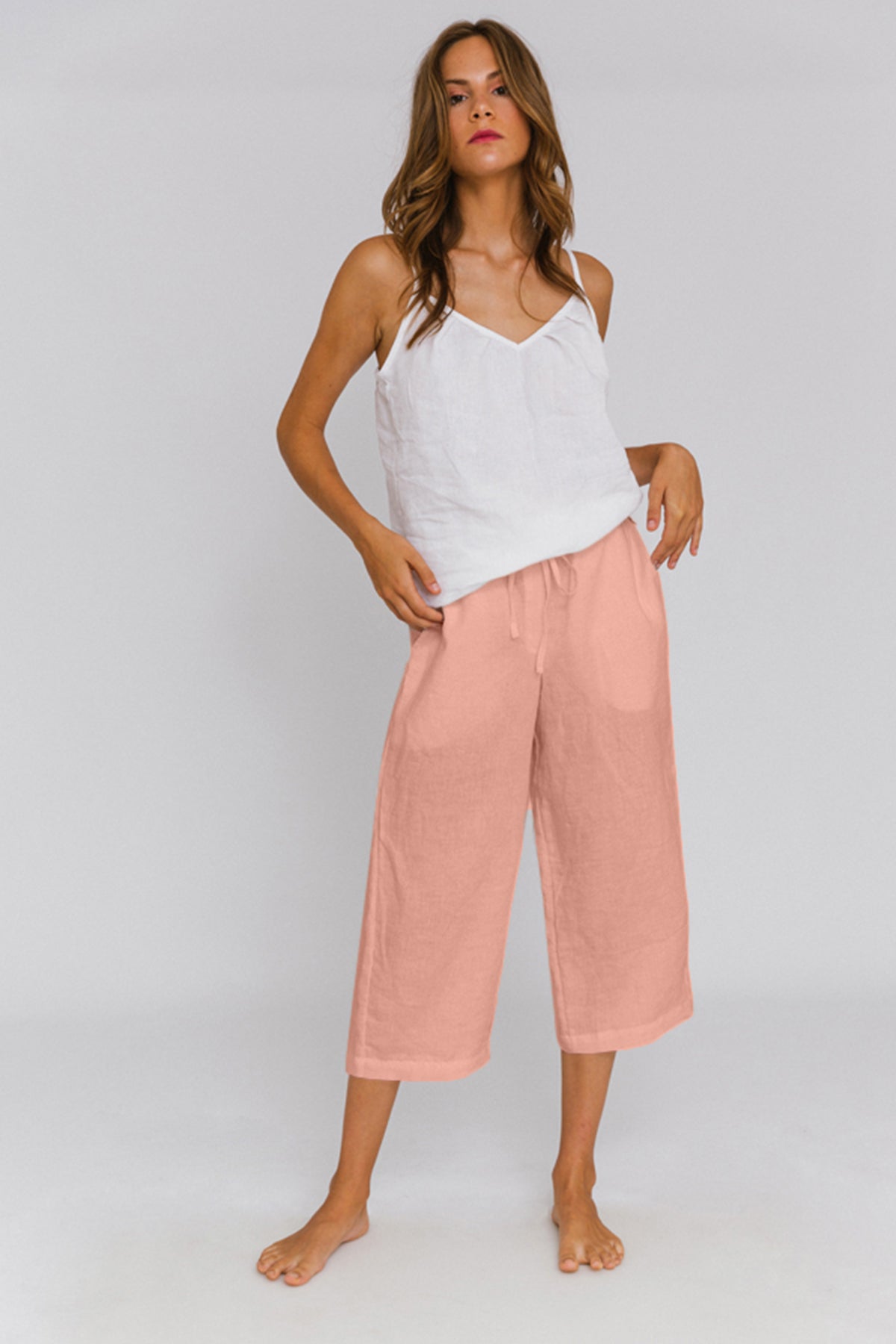Bermuda femme en lin lavé rose - Carla