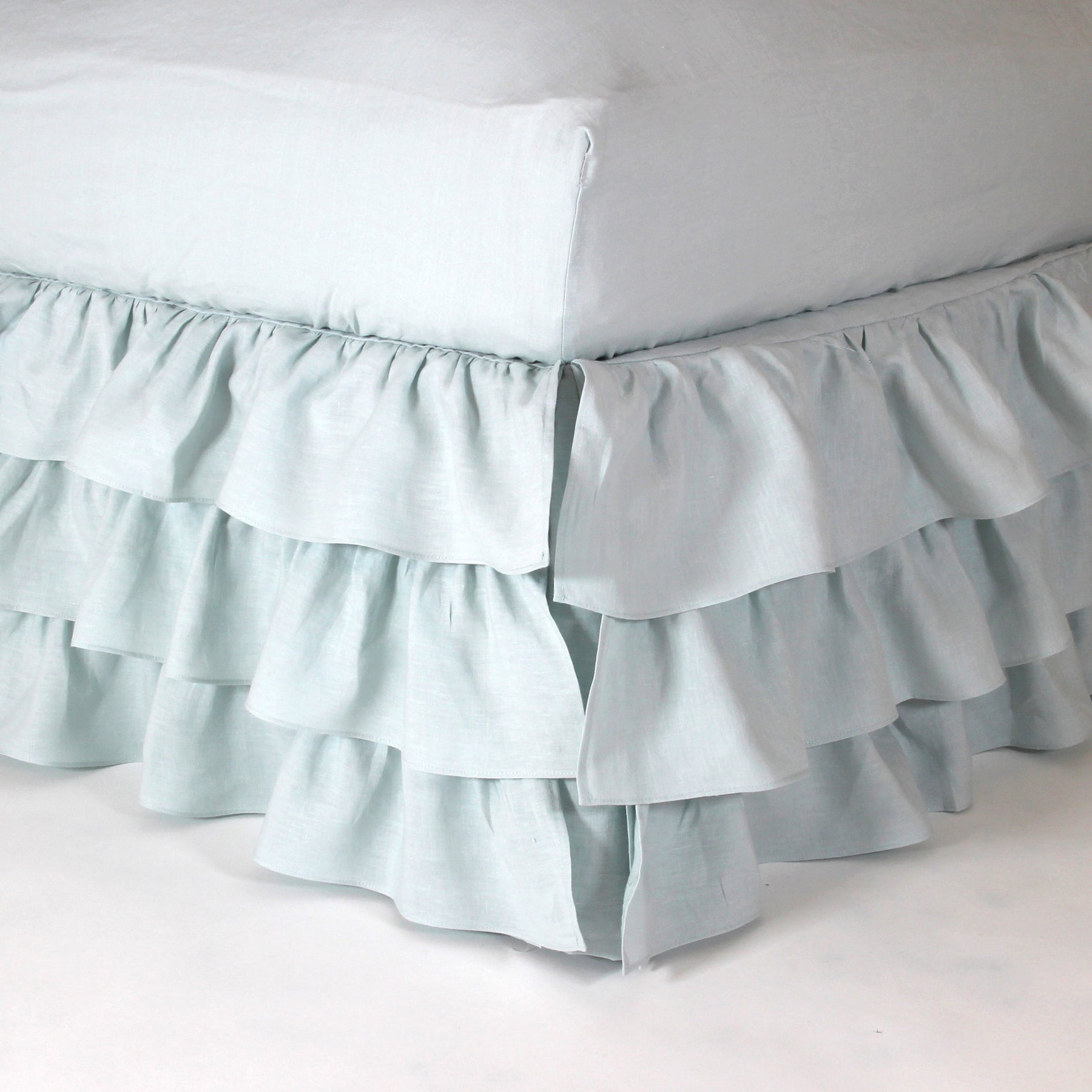 Cache-sommier cascade en lin lavé bleu glacier