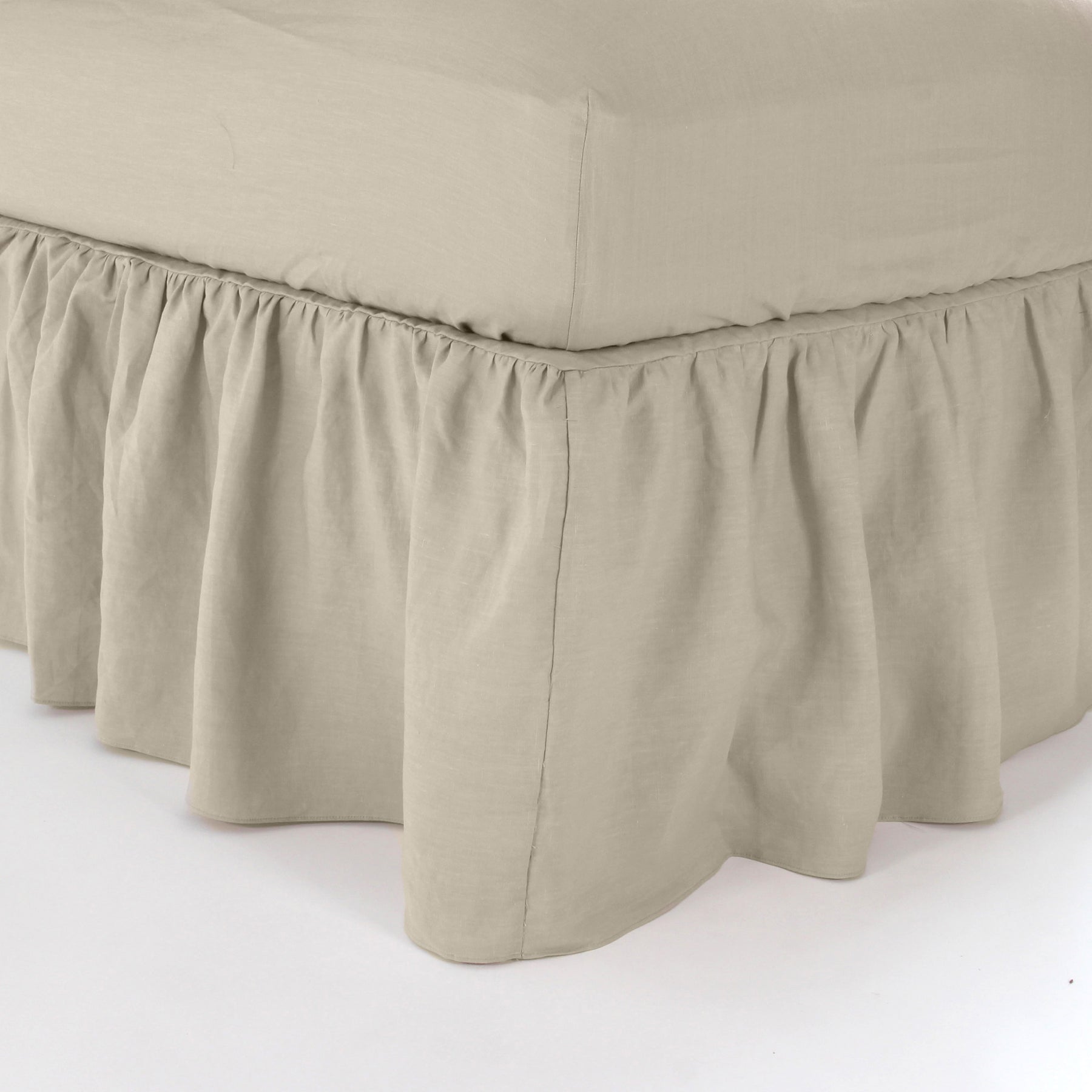 Cache-sommier en lin lavé à fronces beige naturel