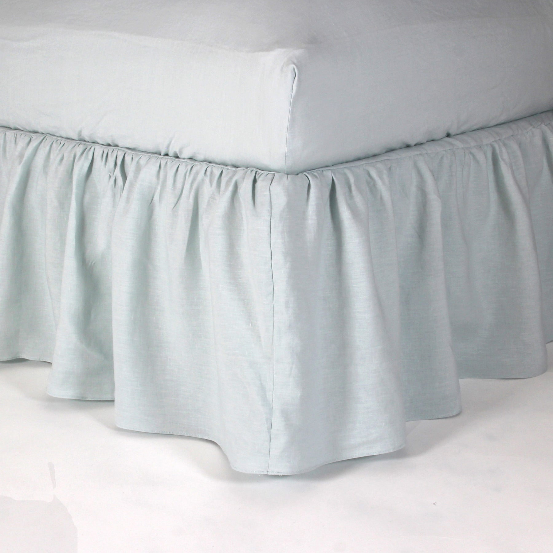 Cache-sommier en lin lavé à fronces bleu glacier