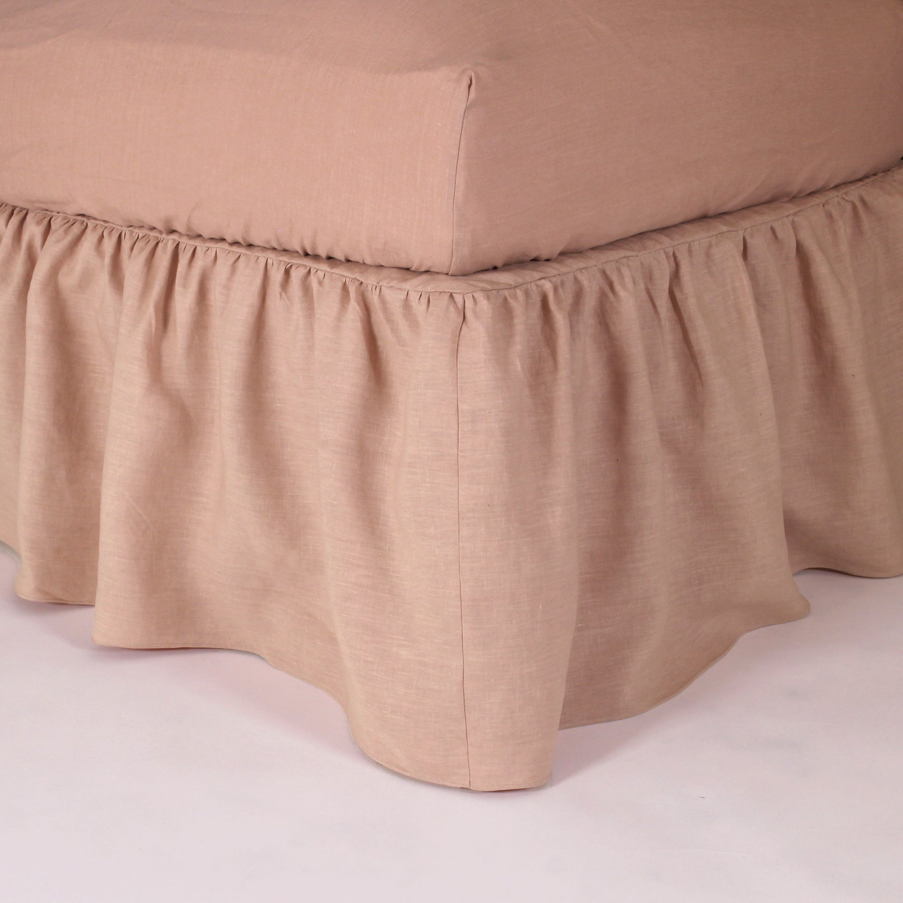 Cache-sommier en lin lavé à fronces rose