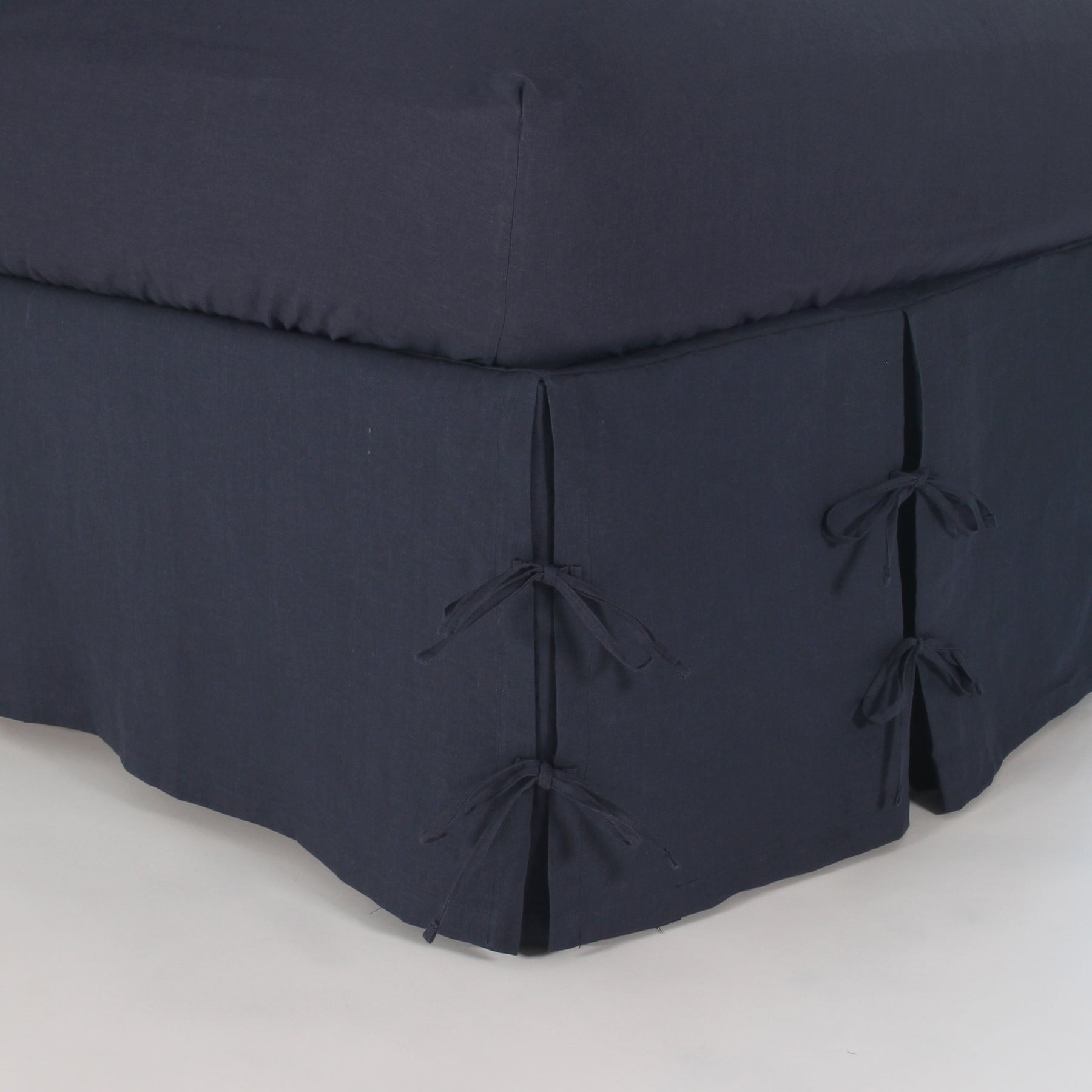 Cache-sommier en lin lavé à nœuds bleu nuit