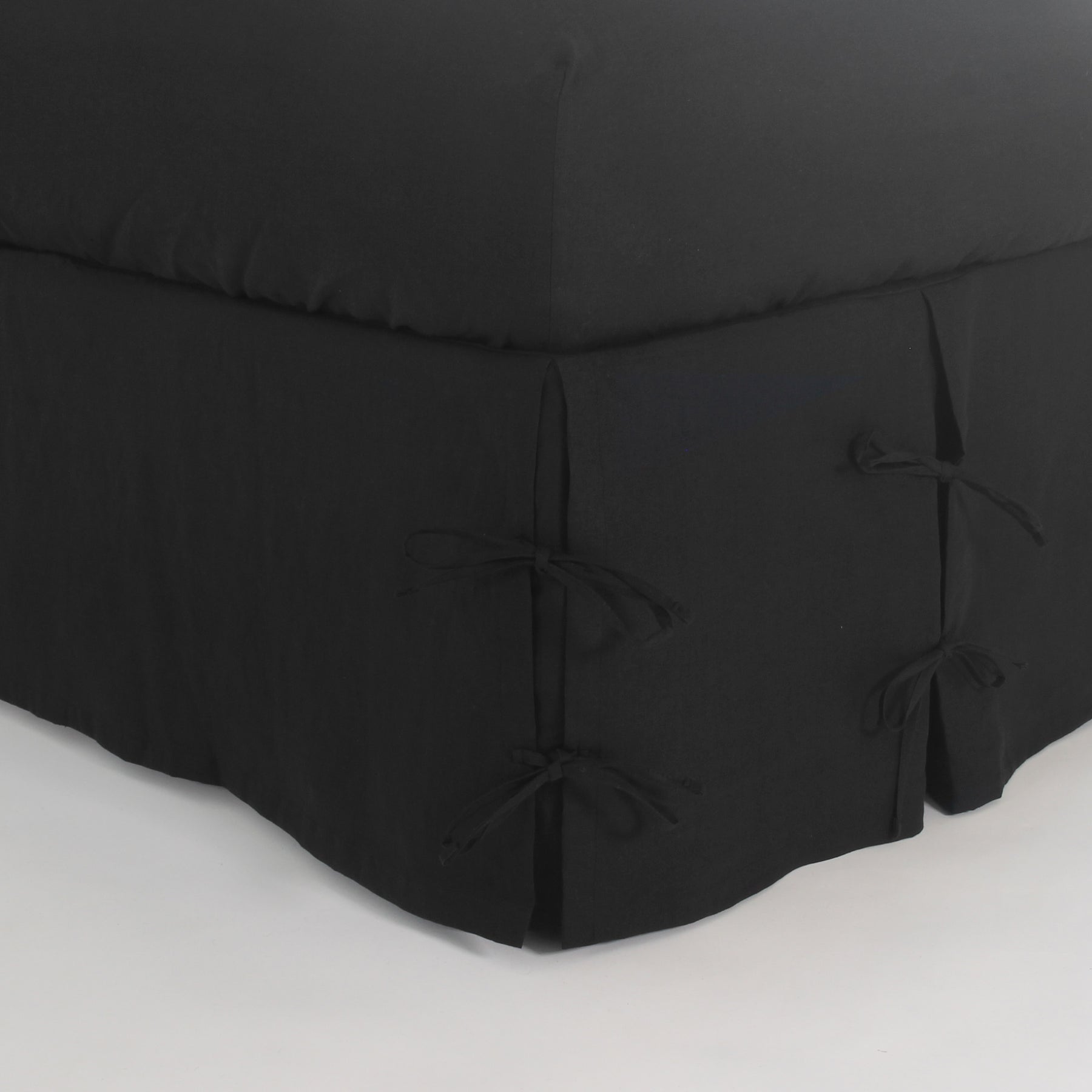 Cache-sommier en lin lavé à nœuds encre noire
