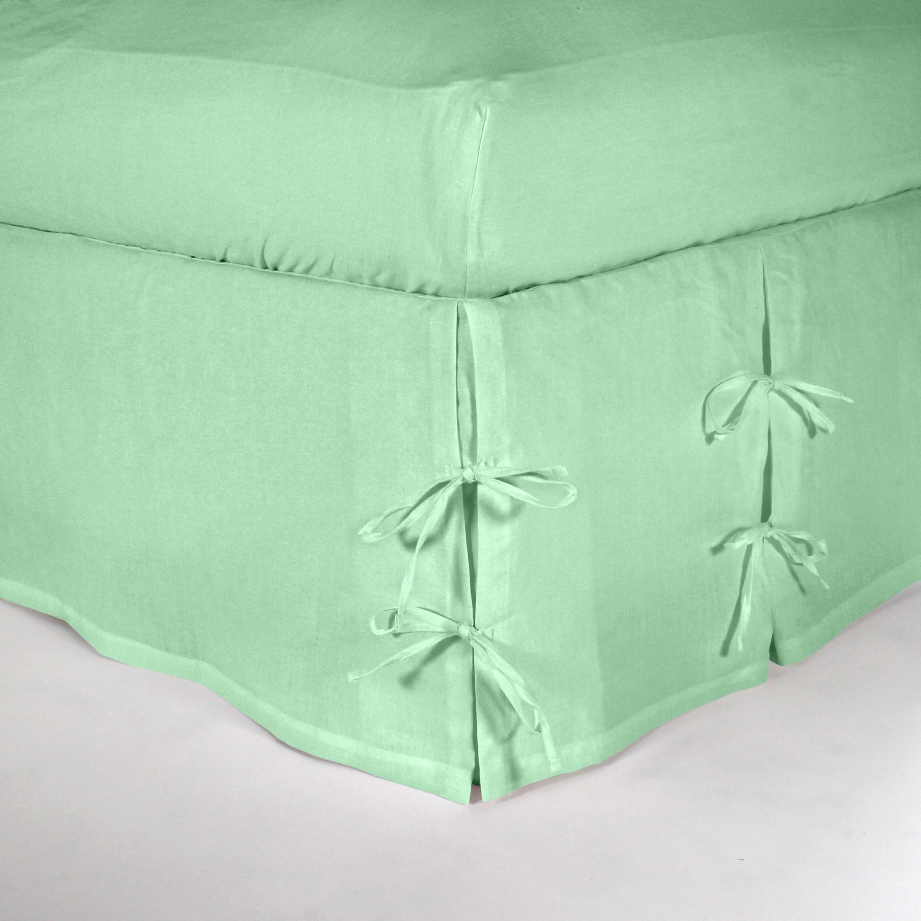 Cache-sommier en lin lavé à nœuds vert menthe