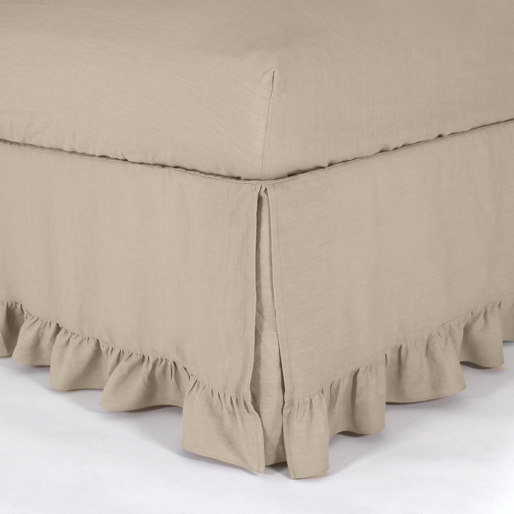Cache-sommier en lin lavé à volants beige naturel