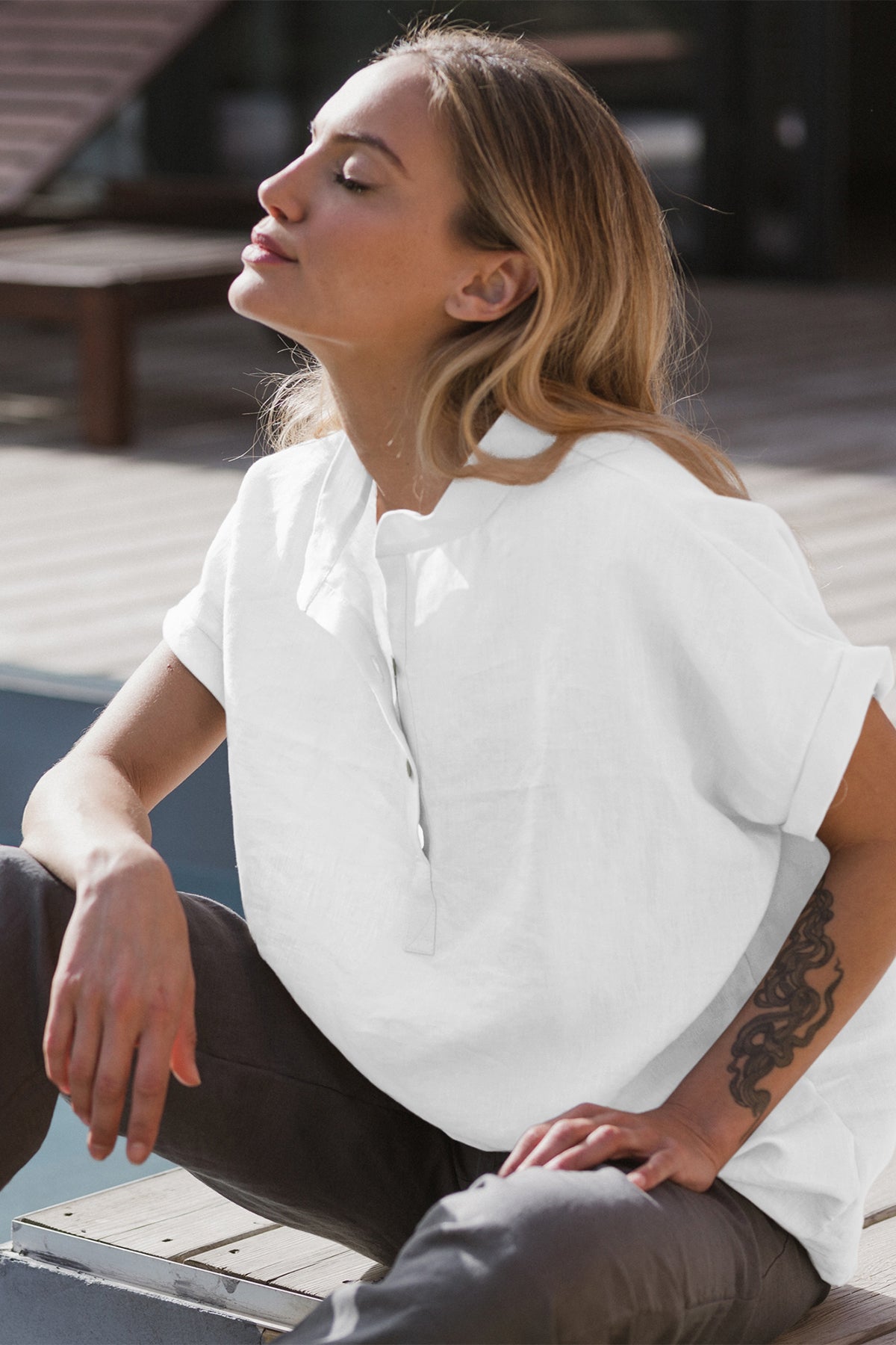 Chemisier femme manches courtes en lin blanc optique - Flor