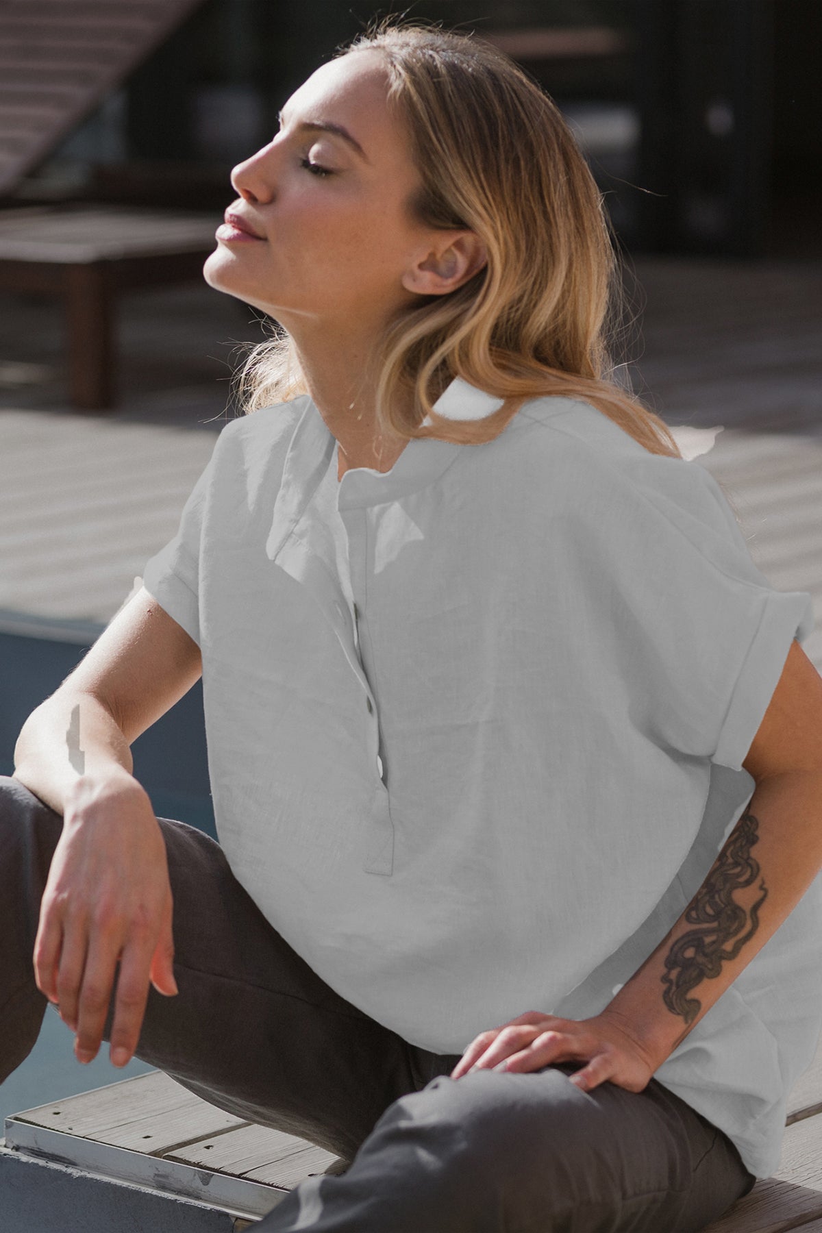 Chemisier femme manches courtes en lin gris minéral - Flor