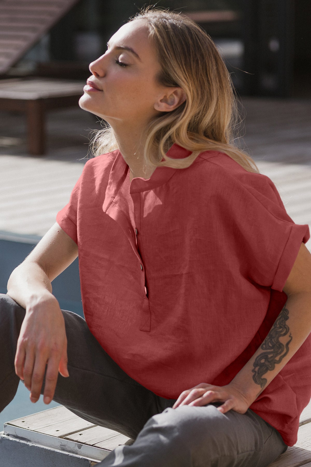 Chemisier femme manches courtes en lin rouge brique - Flor