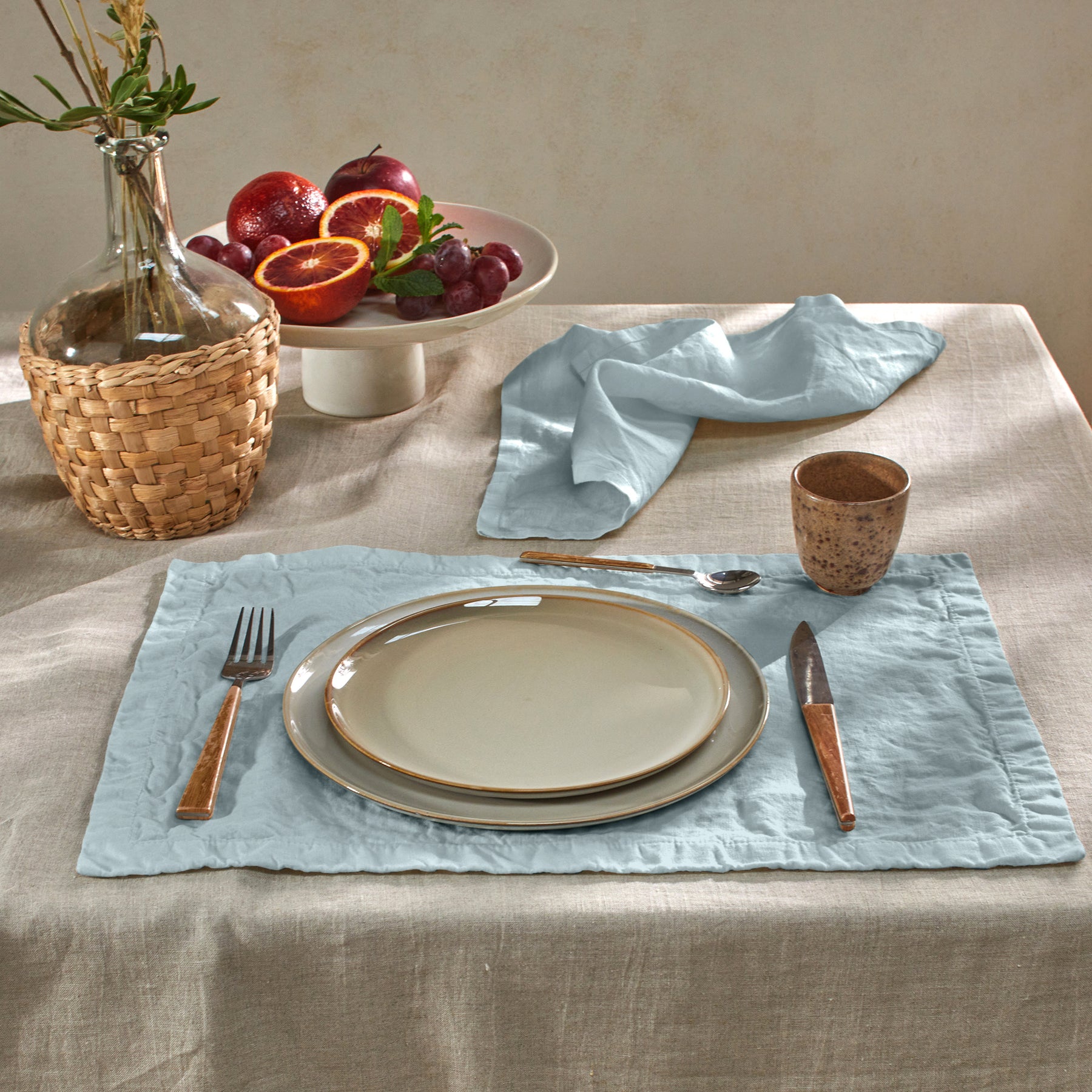 Lot de 4 ou 6 sets de table en lin lavé bleu glacier