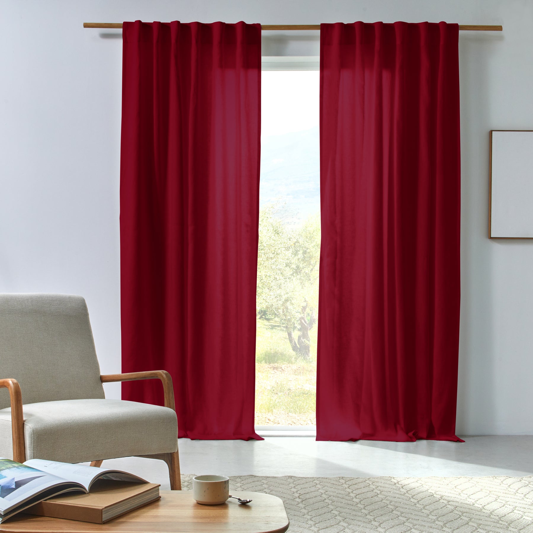 Rideau en lin froissé bordeaux