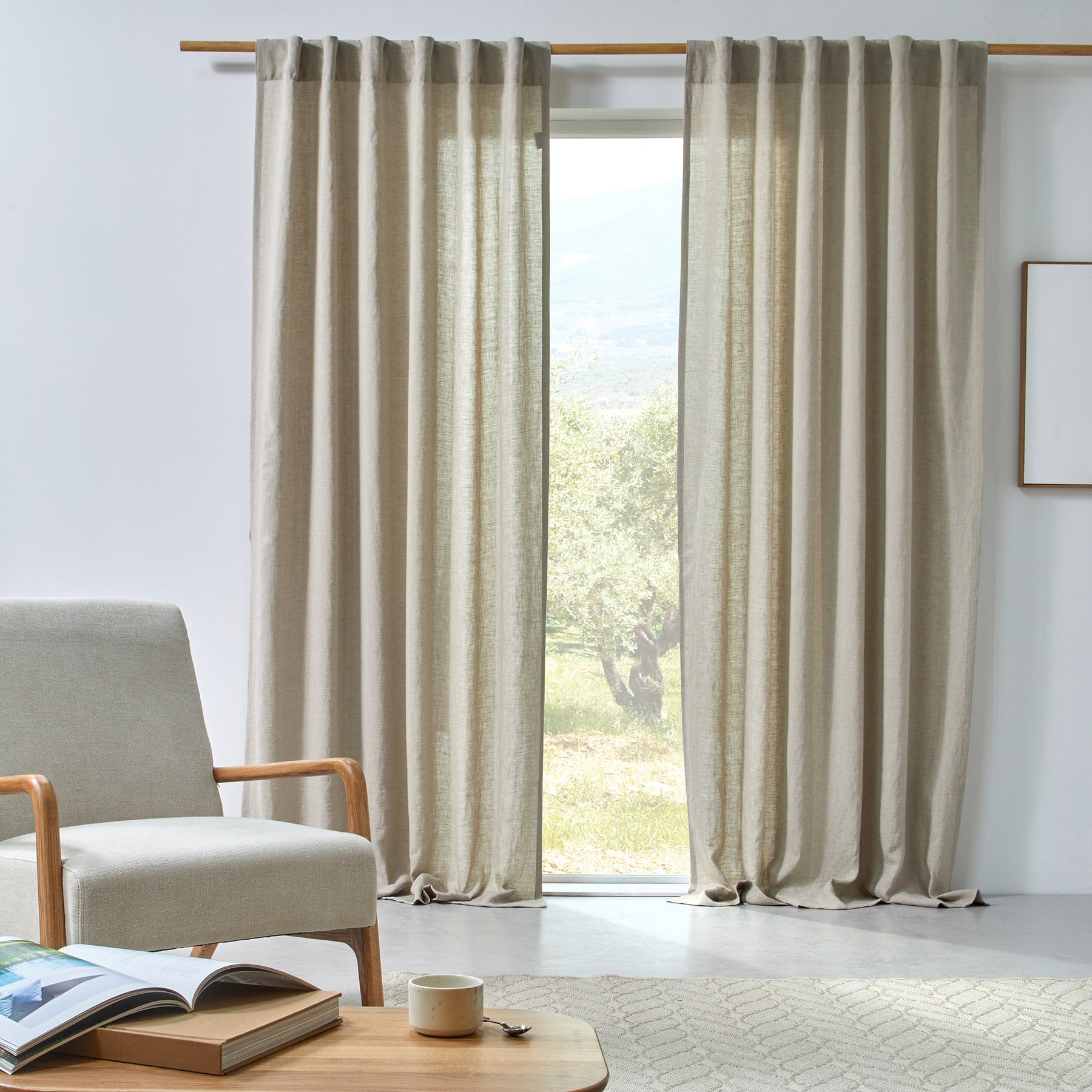 Rideau sur mesure en lin froissé beige naturel