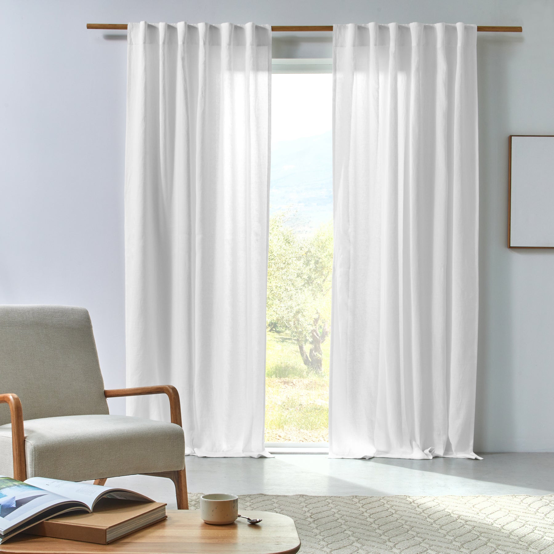 Rideau sur mesure en lin froissé blanc optique