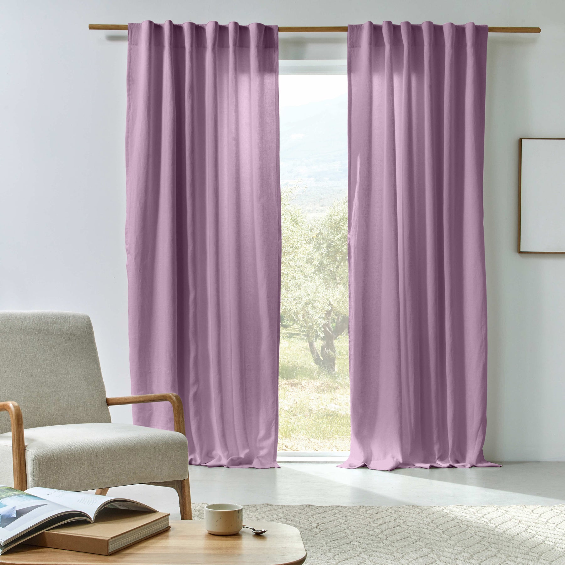 Rideau lin doublure coton lilas
