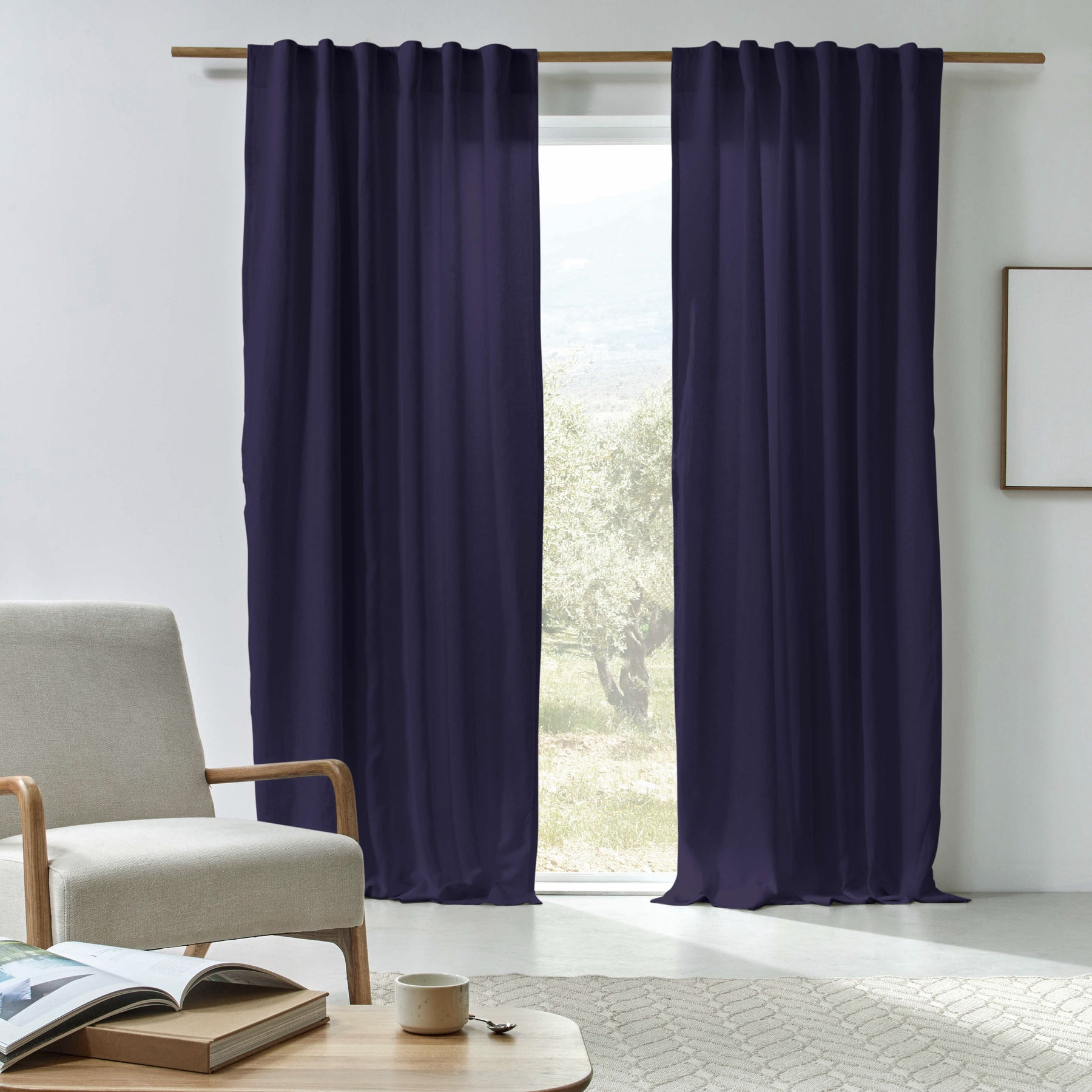 Rideau sur mesure en lin doublure coton bleu nuit