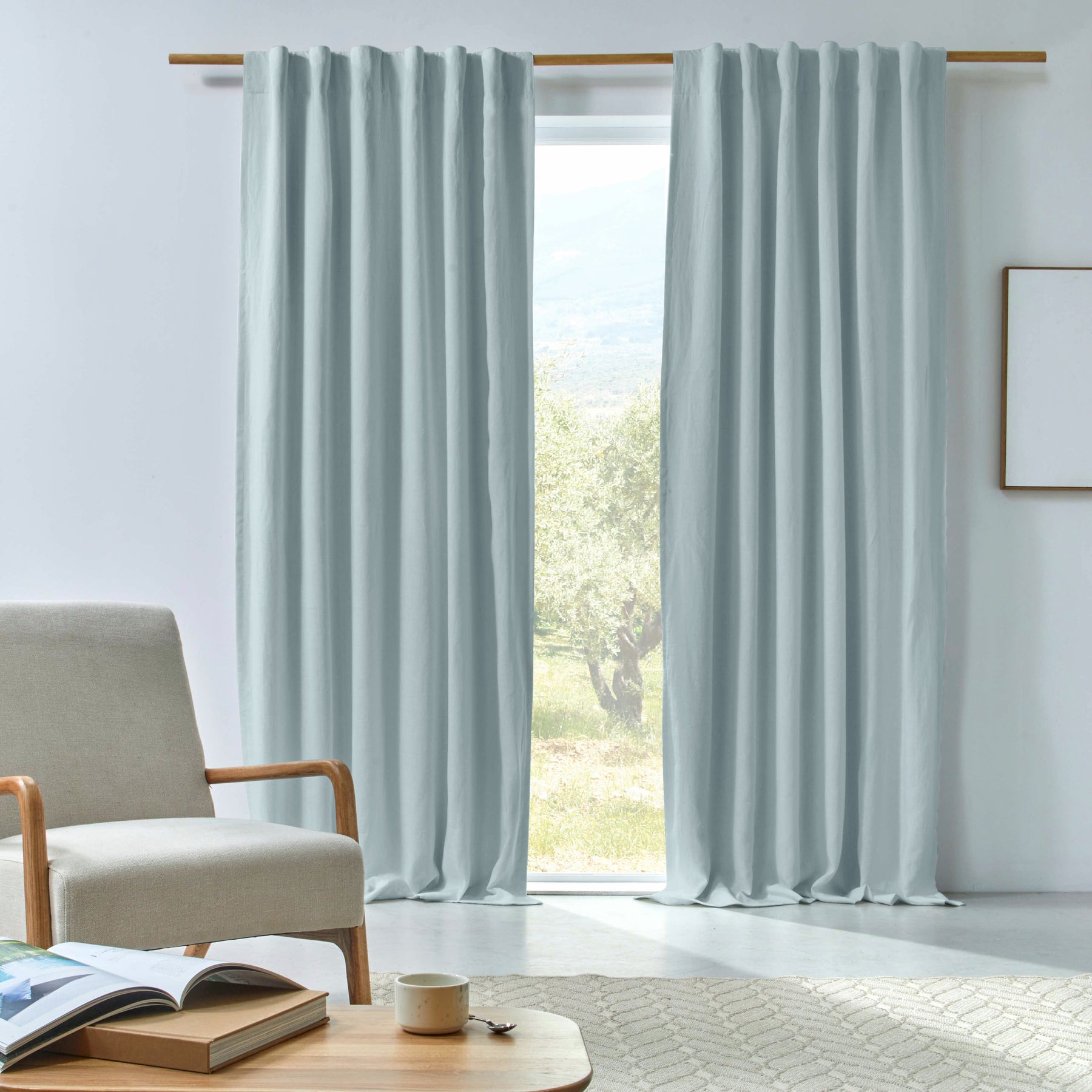 Rideau sur mesure en lin occultant rectangulaire bleu glacier
