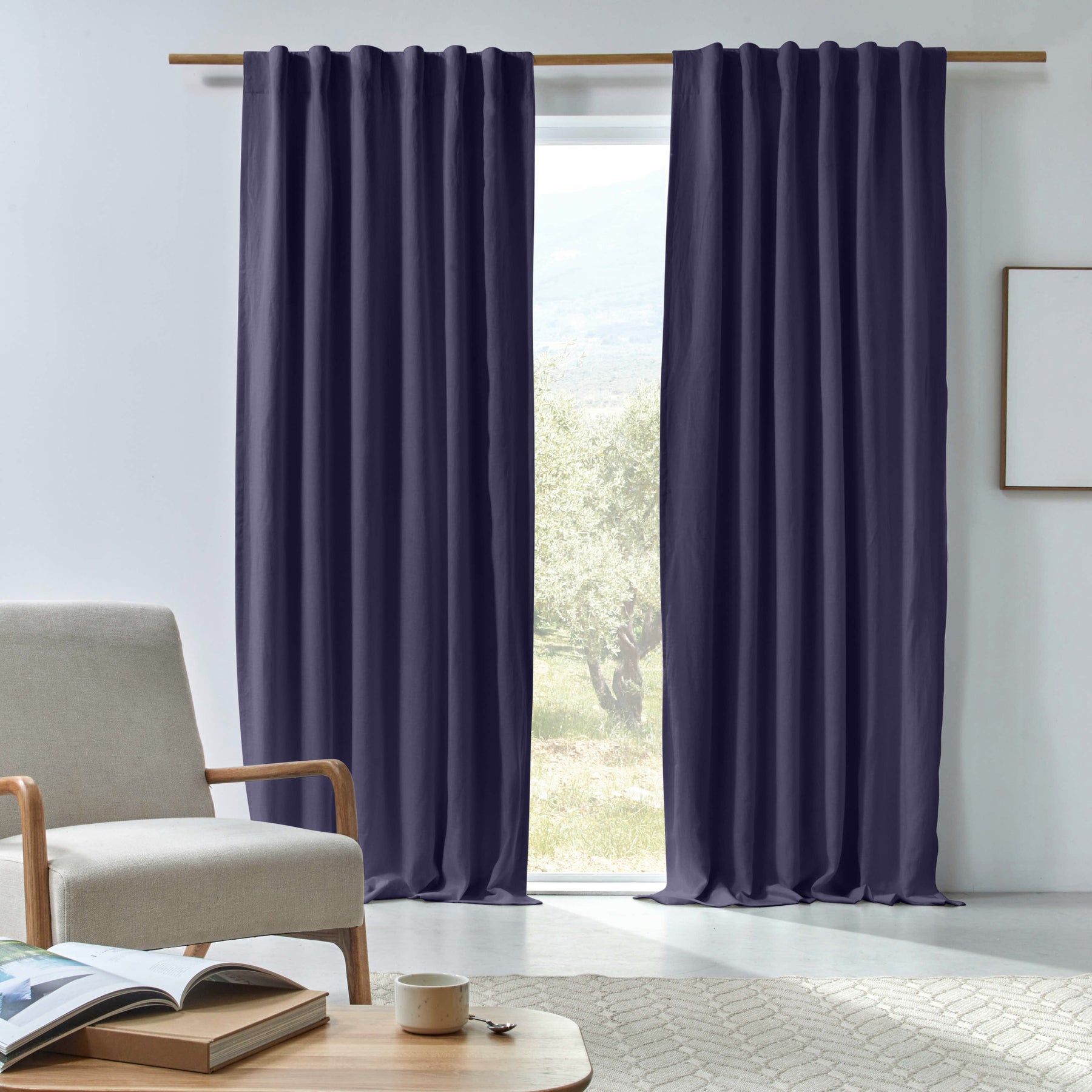 Rideau sur mesure en lin occultant rectangulaire bleu nuit