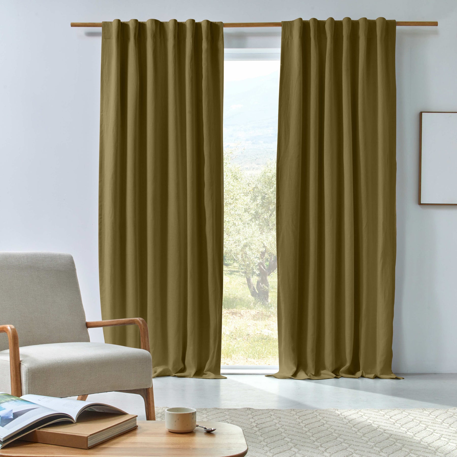 Rideau lin occultant vert olive