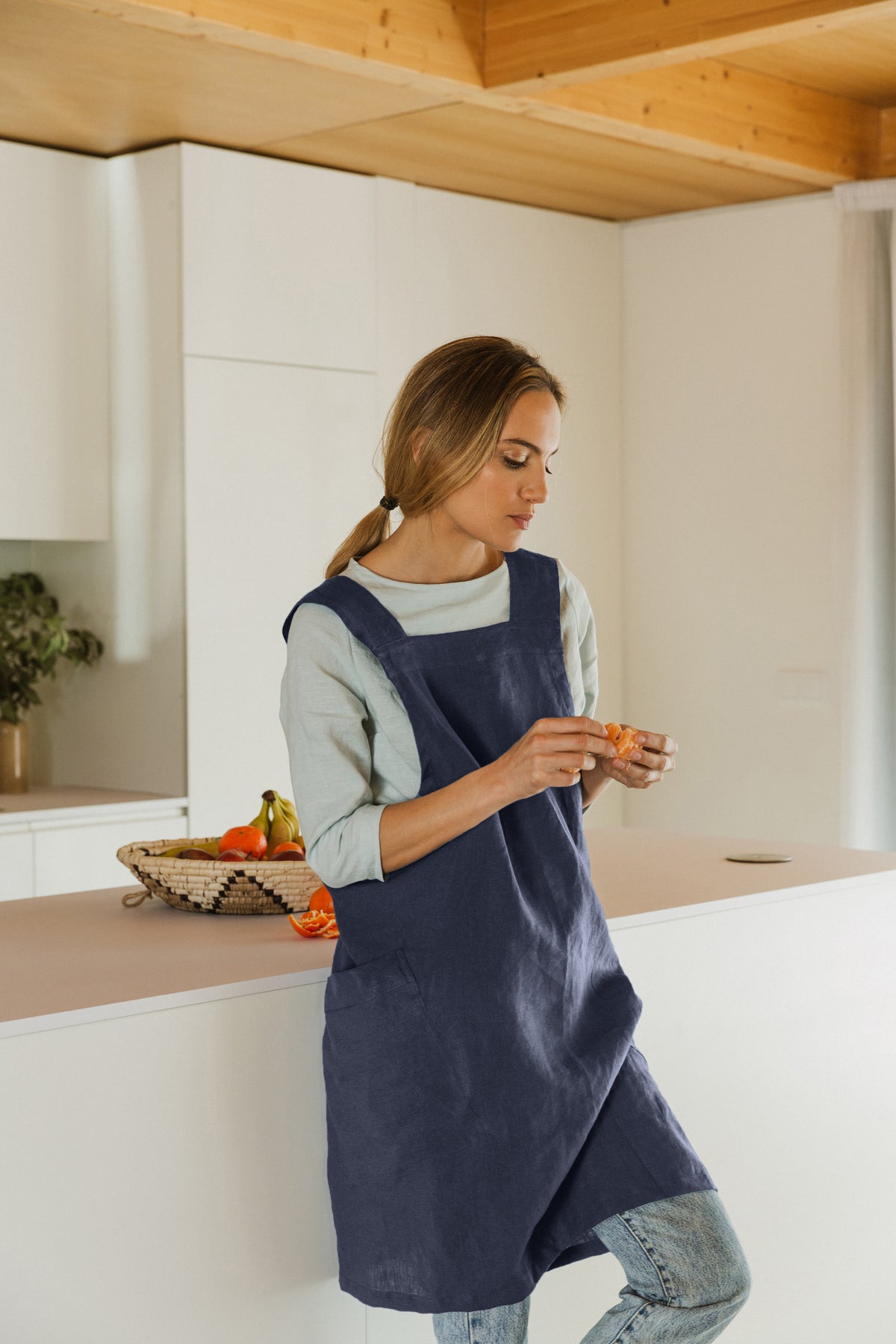 Tablier japonais en lin bleu nuit - Noa