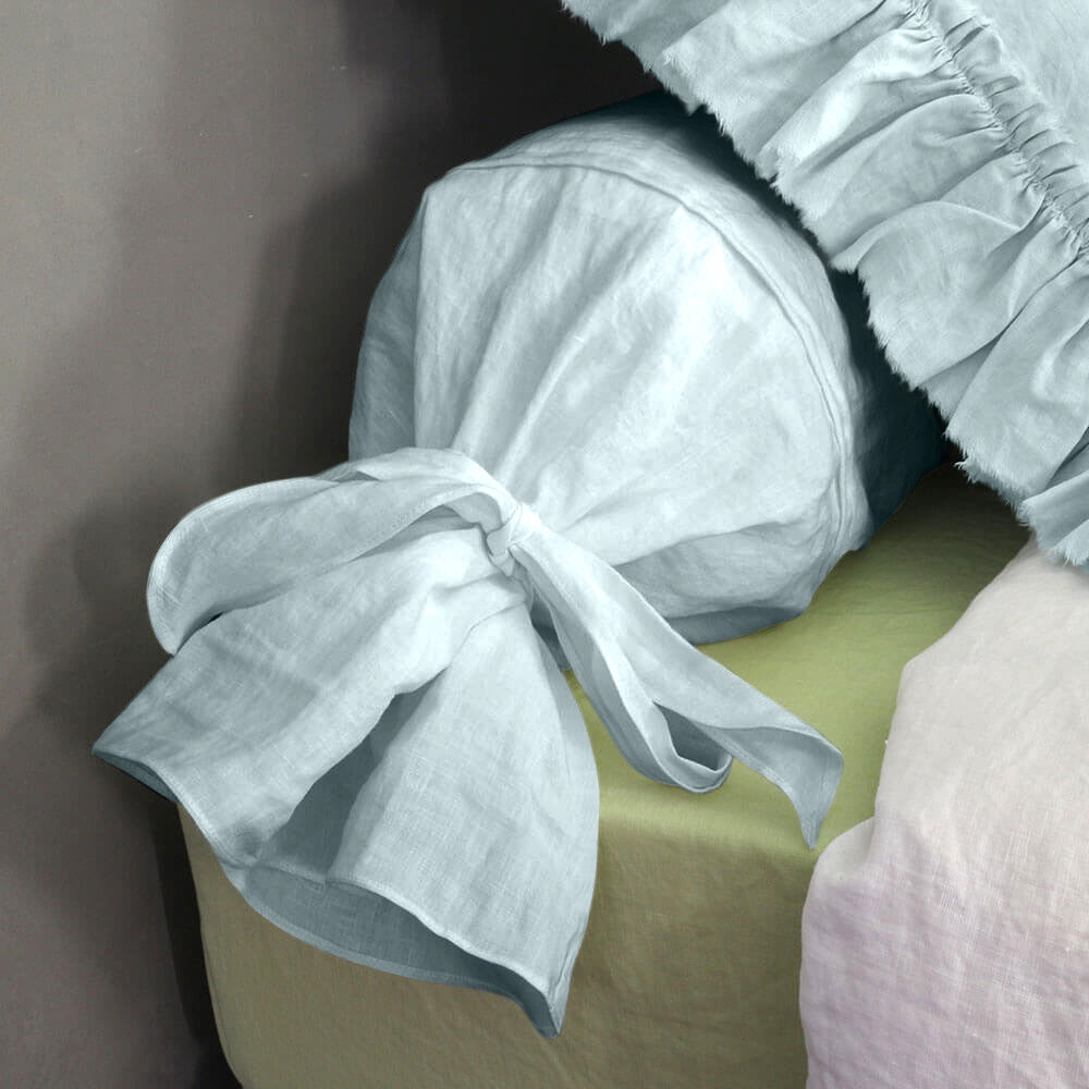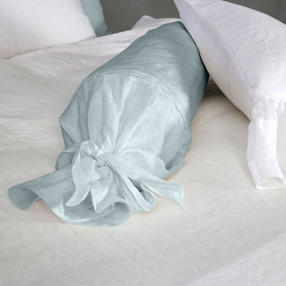 Taie de traversin en lin bleu glacier