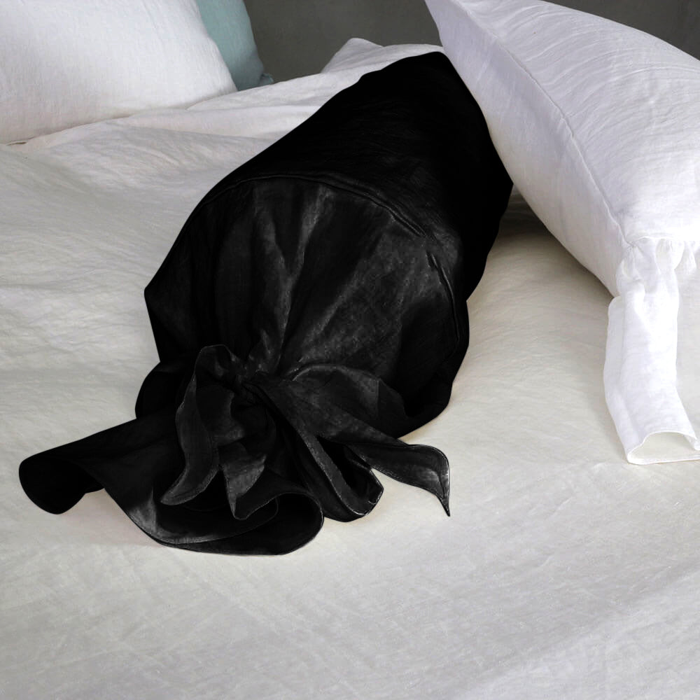 Taie de traversin en lin encre noire