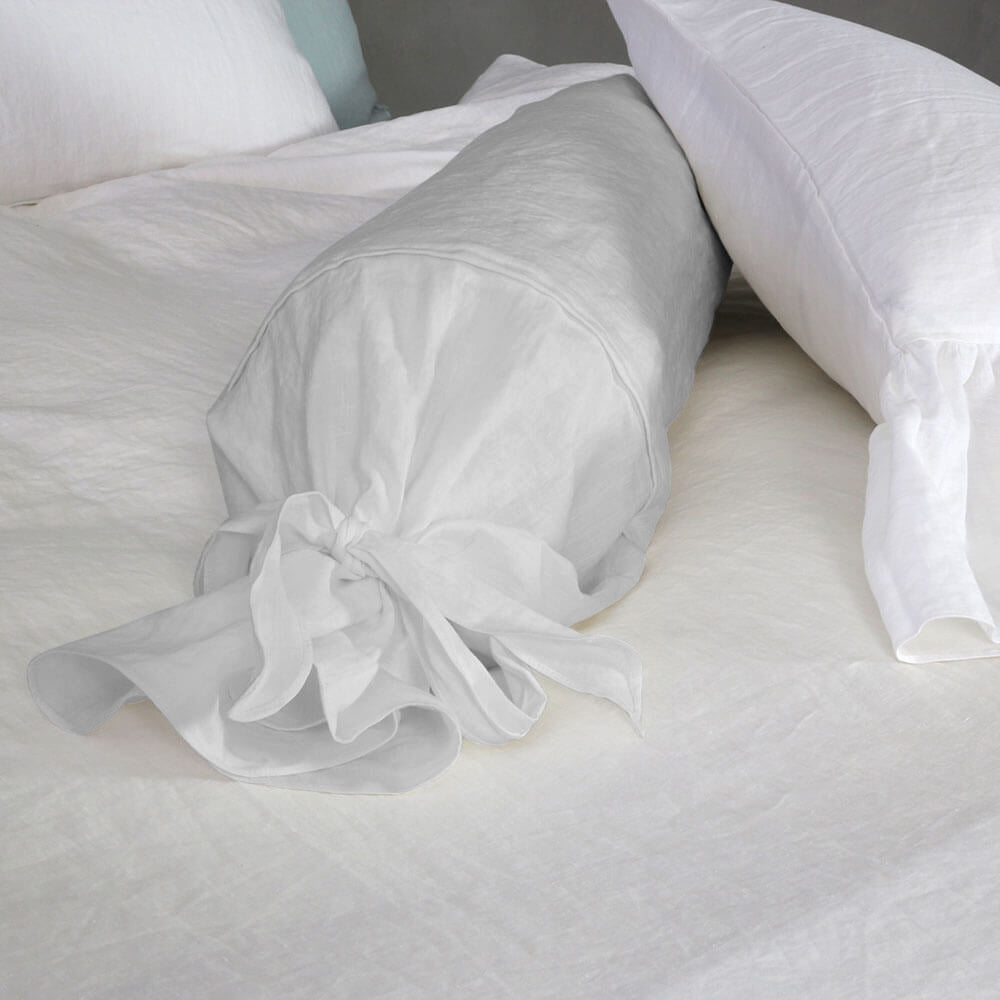 Taie de traversin en lin gris minéral