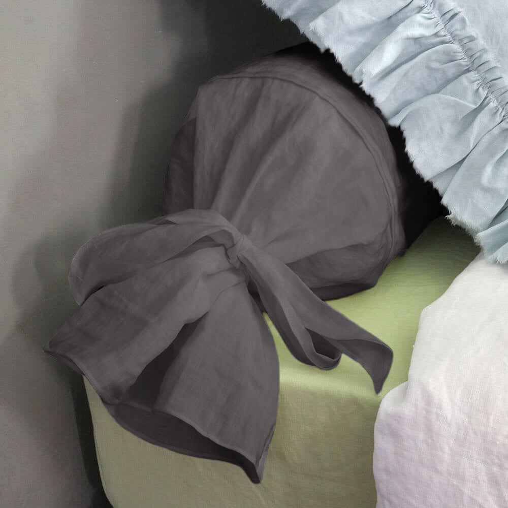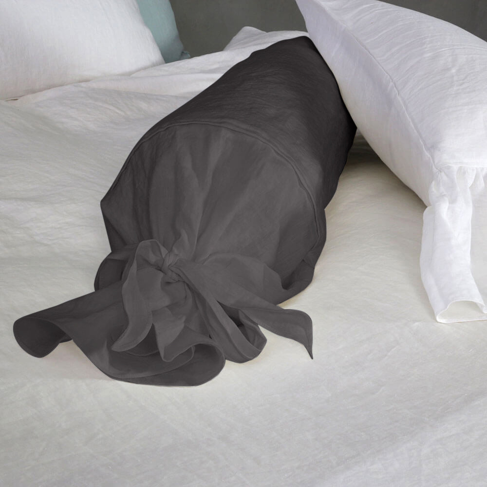 Taie de traversin en lin gris plomb
