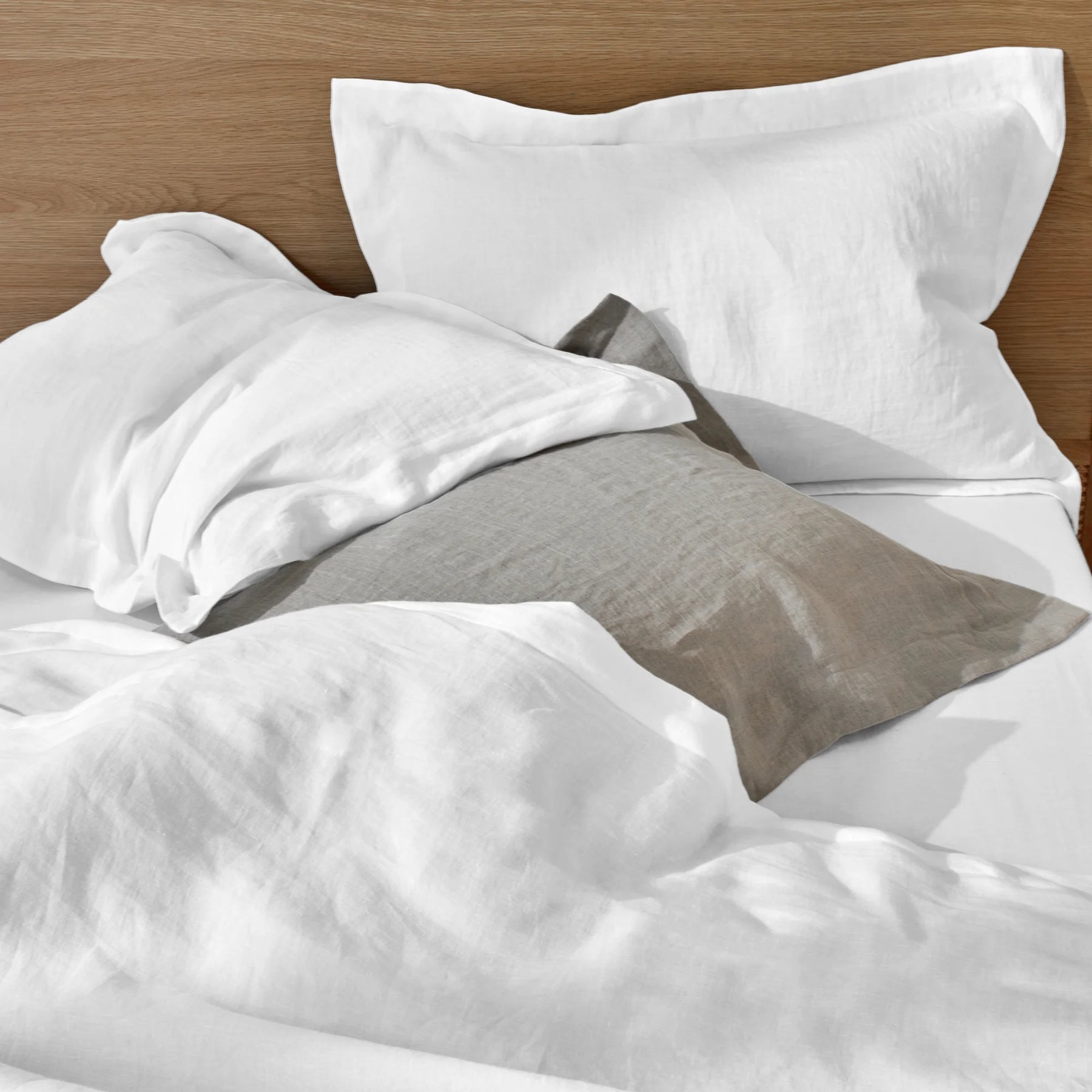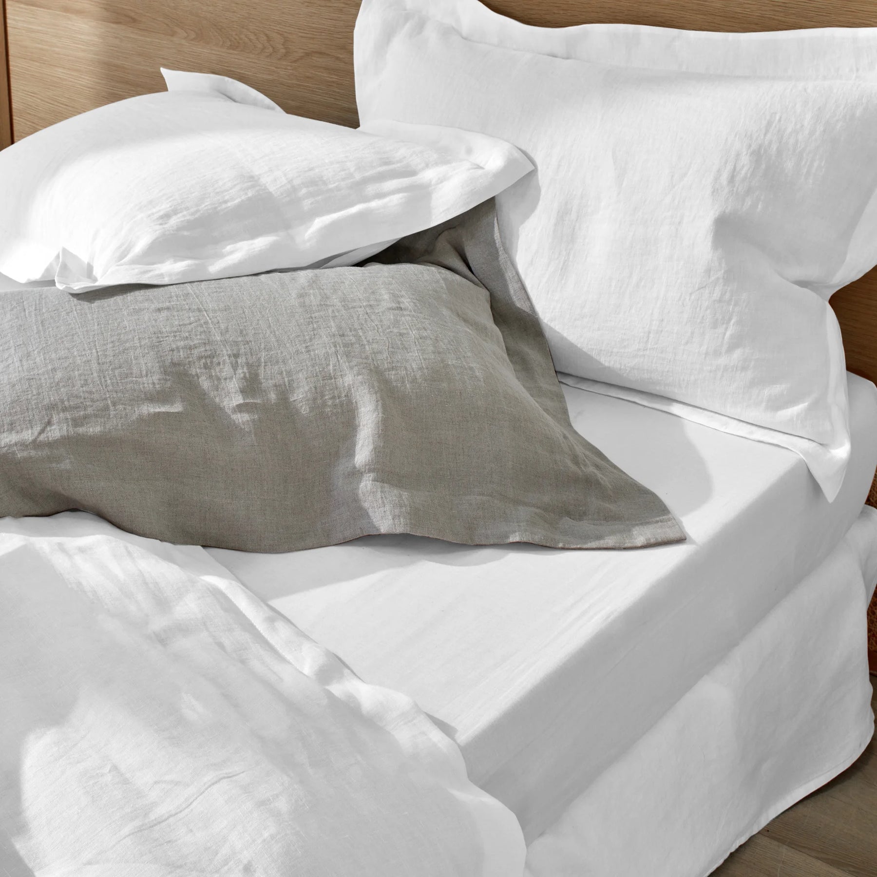 Paire de taies d'oreiller à volants plats blanc optique en lin
