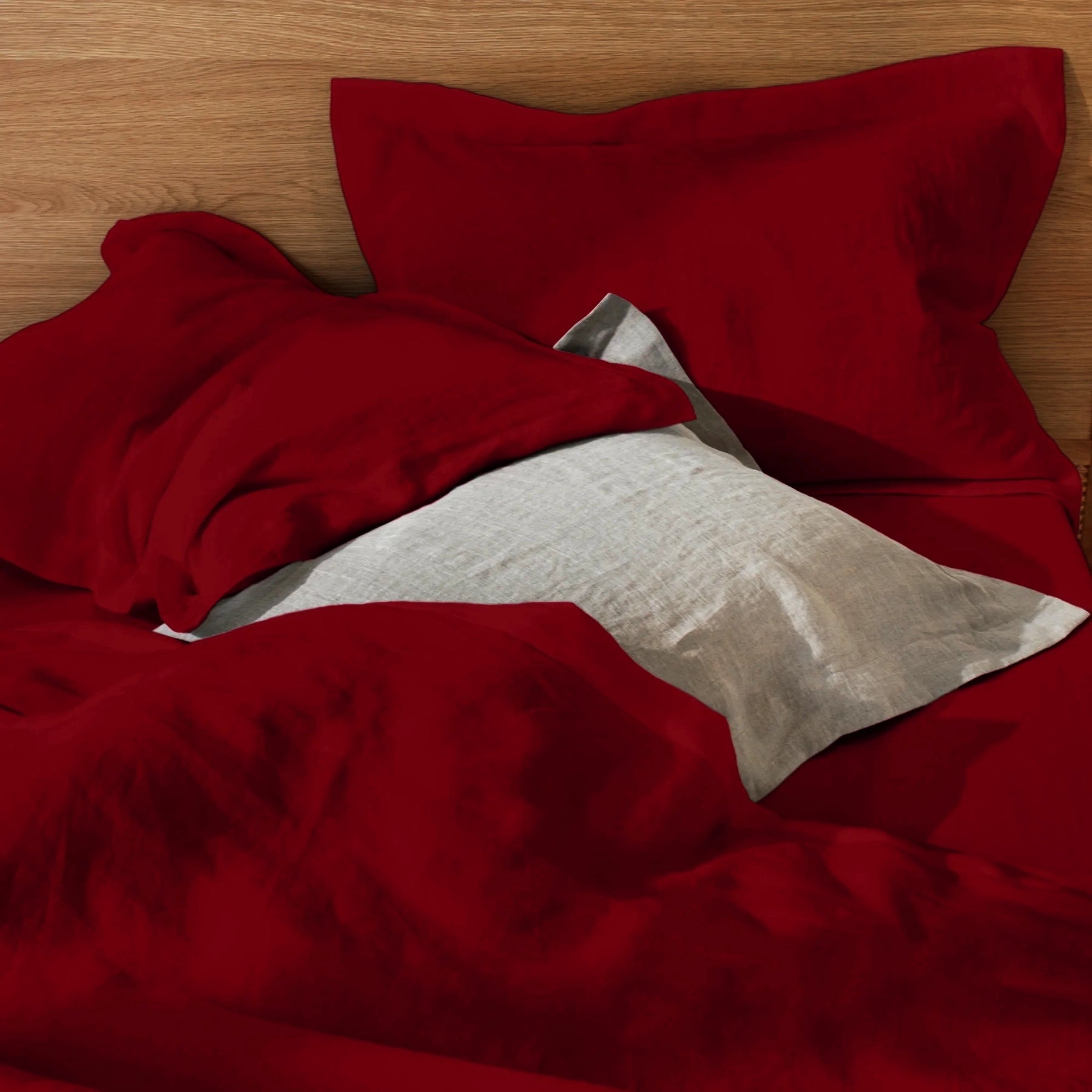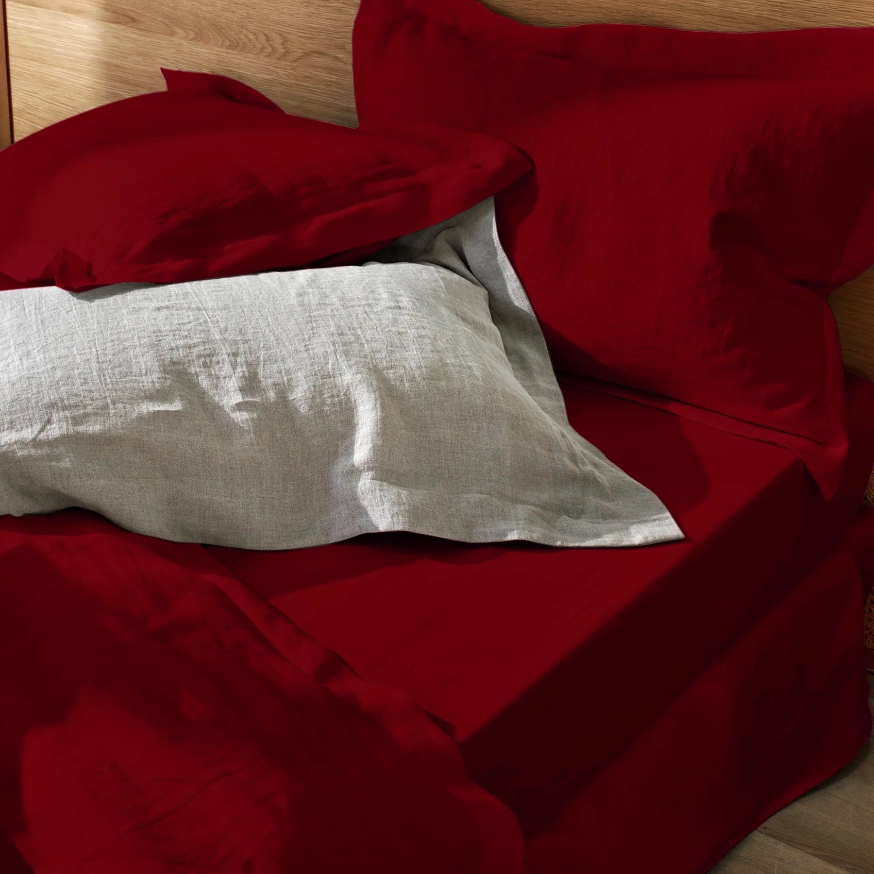 Paire de taies d'oreiller à volants plats bordeaux en lin