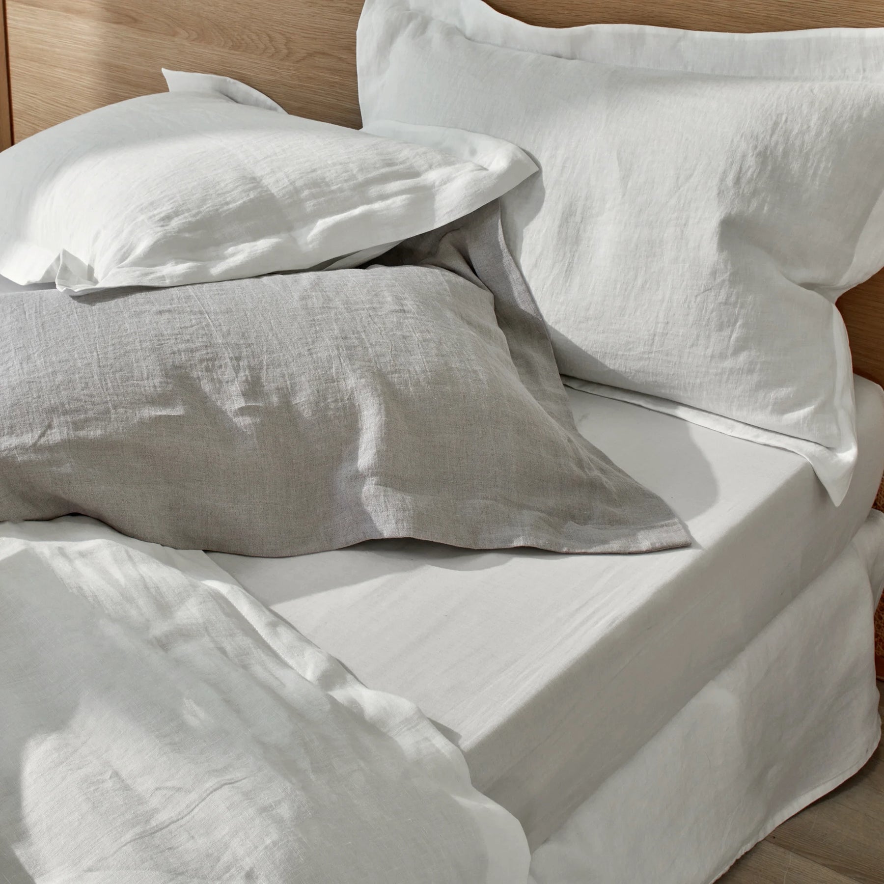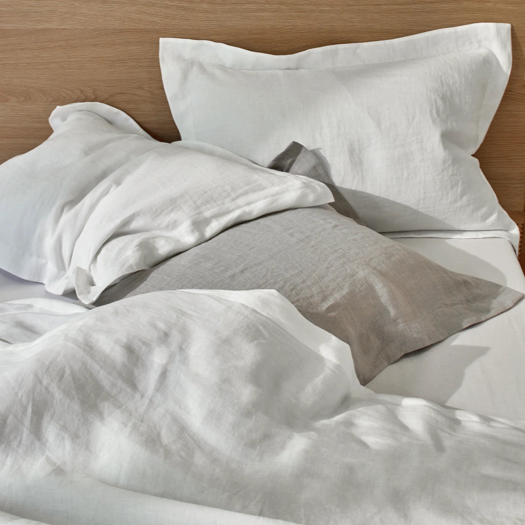 Paire de taies d'oreiller à volants plats ivoire en lin