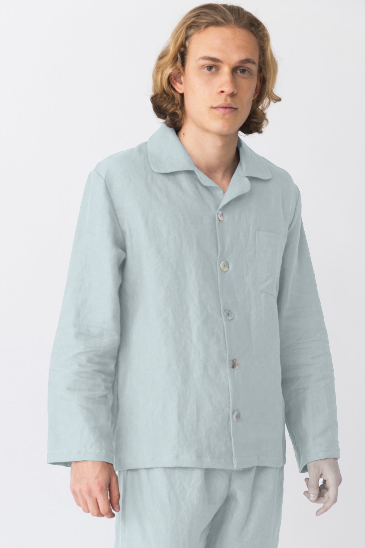 Veste pyjama homme manches longues en lin bleu glacier - Diego